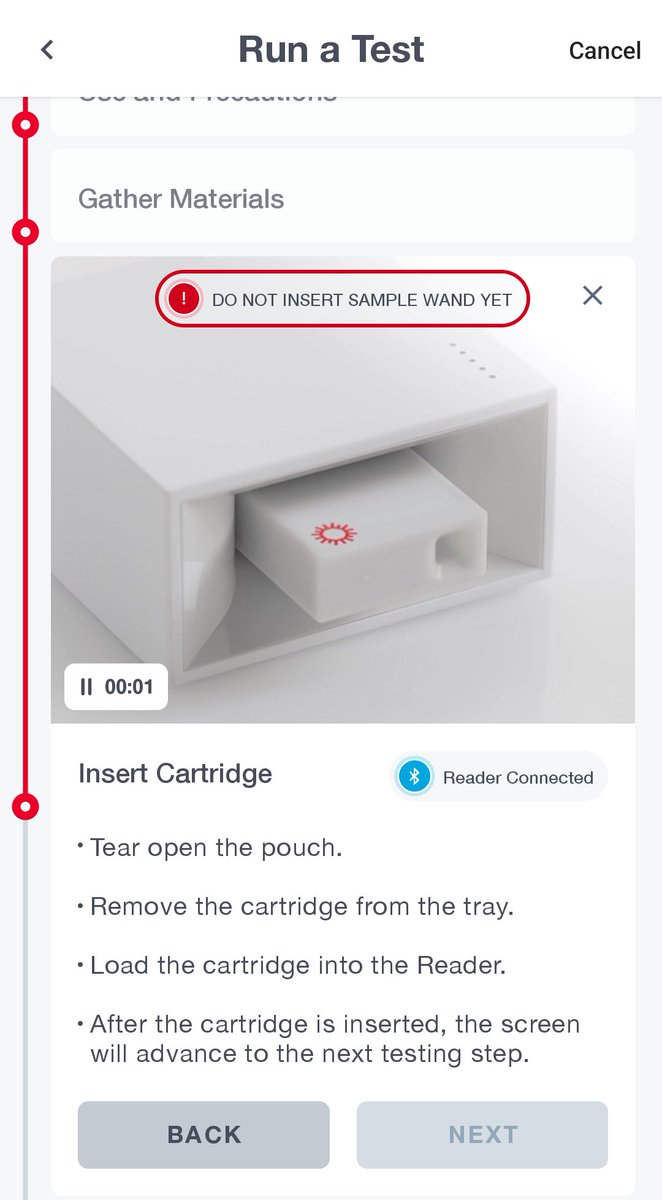 I think that’s a ceramic heater under the swab. So maybe the metal pad in the reader is not a heater but an electromagnet! Maybe this is some sort of magnetic biosensor? Eg. https://pubs.acs.org/doi/10.1021/acssensors.8b00048#